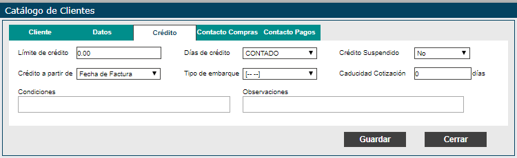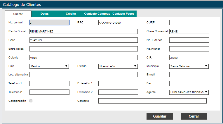 Los datos mostrados en los campos de estas capturas se deberá de llenar para poder guardar la información del cliente.