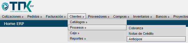 Clientes > Catálogos > Anticipos