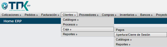 Para realizar una venta directa en el sistema, usted deberá dirigirse a Clientes > Caja > Apertura/Cierre de sesión.