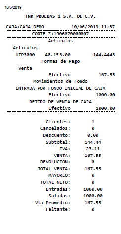 Al finalizar las ventas del día se procede a realizar el corte en caja.