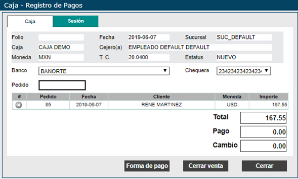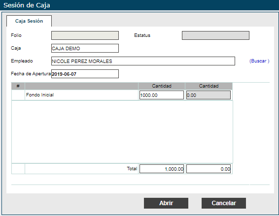 Haga clic sobre el icono “Nuevo” para abrir sesión en caja.