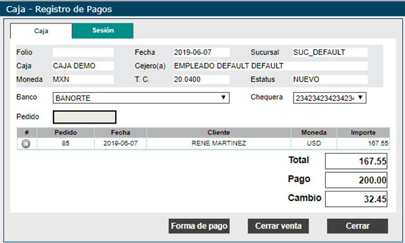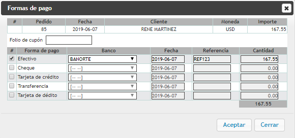 Agregue en el recuadro de Pago el monto que el cliente dio