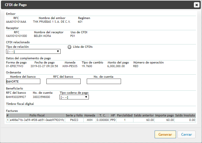 Visualice y modifique la información si desea cambiar alguna opción, después haga clic sobre el botón Generar.