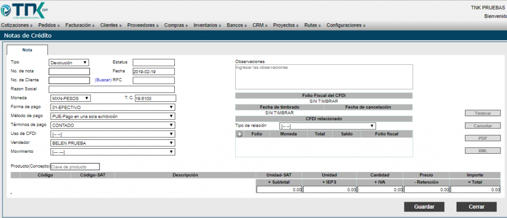 14. Una vez dentro de la nota de crédito creada pulse el botón de Timbrar