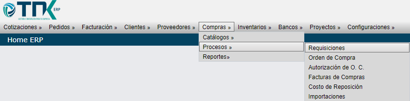 Diríjase a Compras > Procesos > Requisiciones