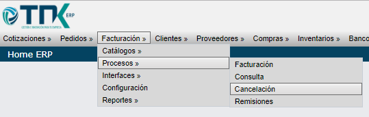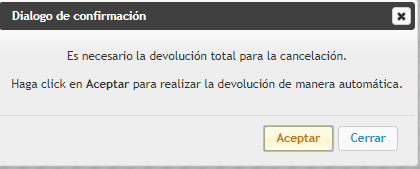 - Cancelación Total: Se utiliza cuando se hace una devolución de productos. Para esta devolución el almacén debe de realizar una entrada por devolución.