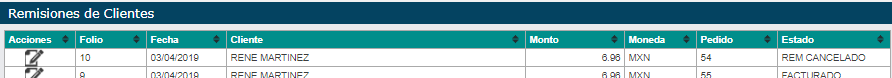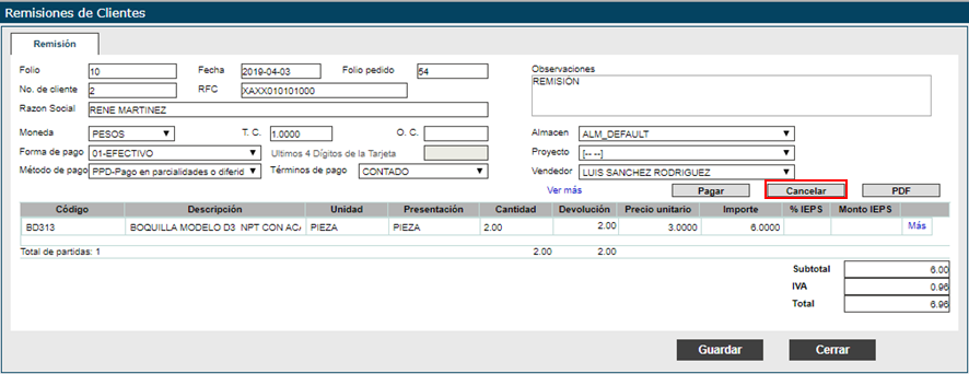 Después de darle a los productos entrada por DEV CANCELACIÓN DE REMISIÓN, ahora podrá realizar la cancelación de la remisión.