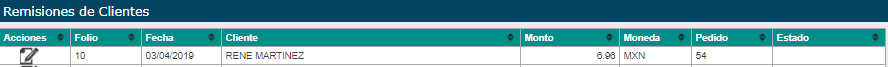 Dentro de la remisión notara que se hizo la devolución de los productos en el campo de Devolución.