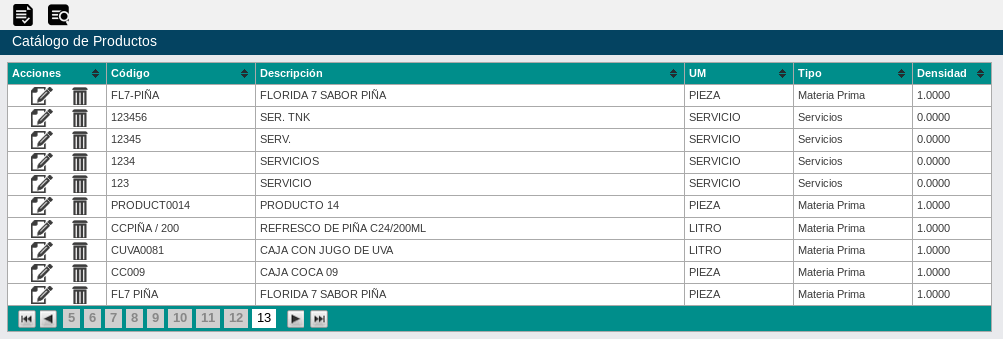 - Densidad. La densidad del producto si se conoce. Se utiliza para las conversiones en el módulo de producción.