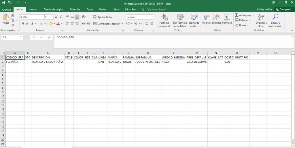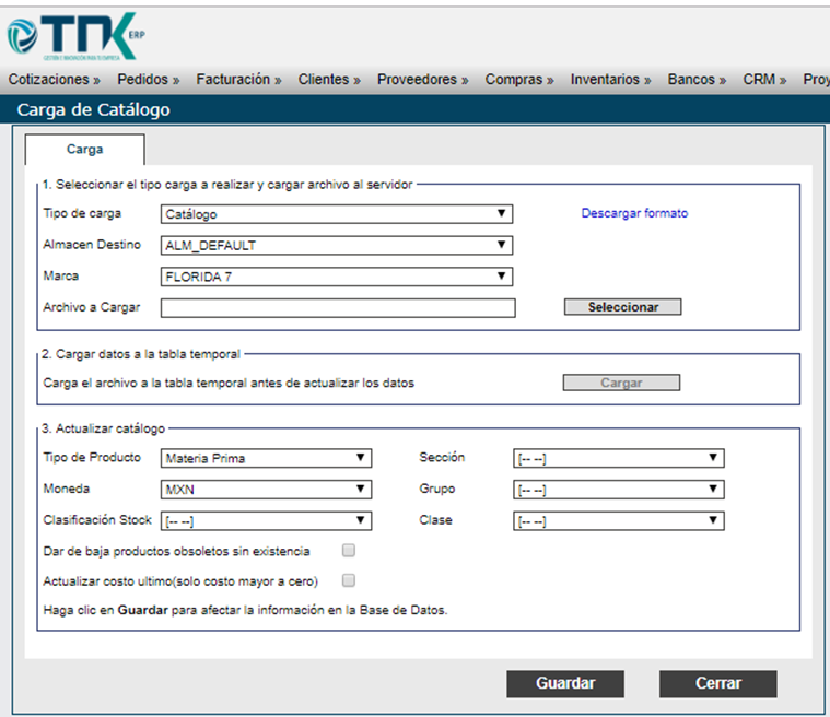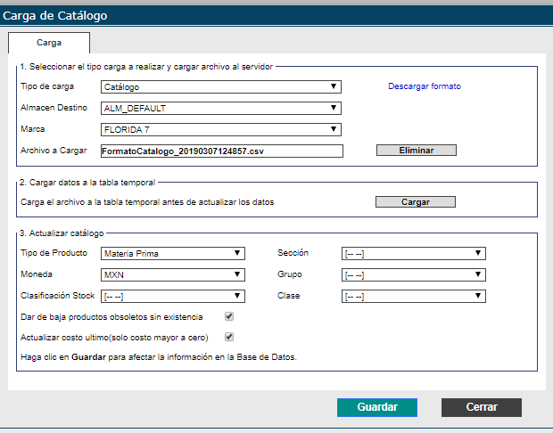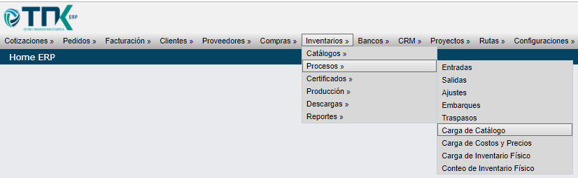 Inventarios > Procesos > Carga de catálogo