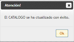 - Seleccione las opciones correspondientes para que se actualice el catálogo
