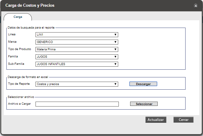 - Si quiere todos los productos en general deje los campos en [–Seleccionar–]