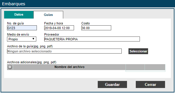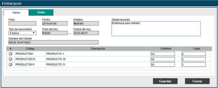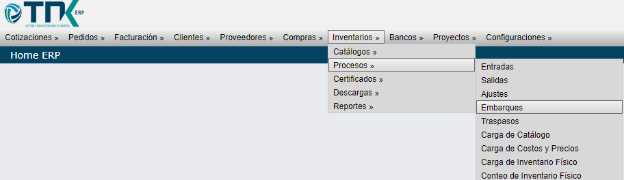 Inventarios > Procesos > Embarques