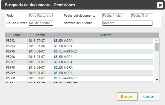 Seleccione el tipo de documento: Remisión o Factura donde se encuentra el cliente y los productos.