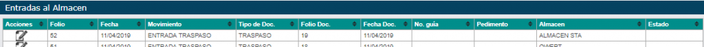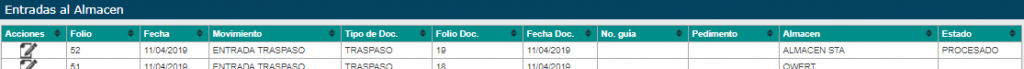 Por parte del almacén de destino en Inventarios > Procesos > Entradas ingrese al folio sin estado con el tipo de movimiento de Traspaso.