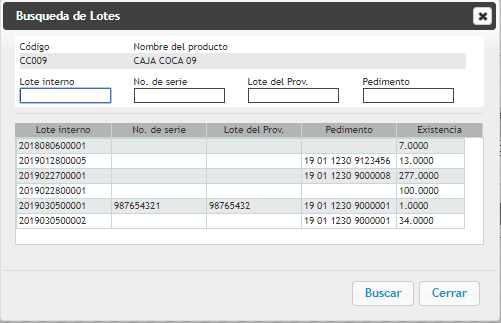 Seleccione un lote del cuadro de búsqueda.