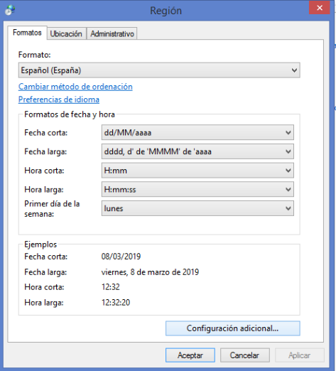 Haga clic sobre Configuración adicional…