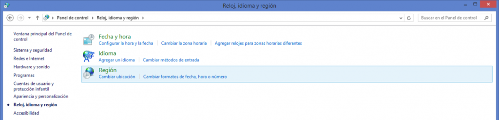 Seleccione Reloj, idioma y región