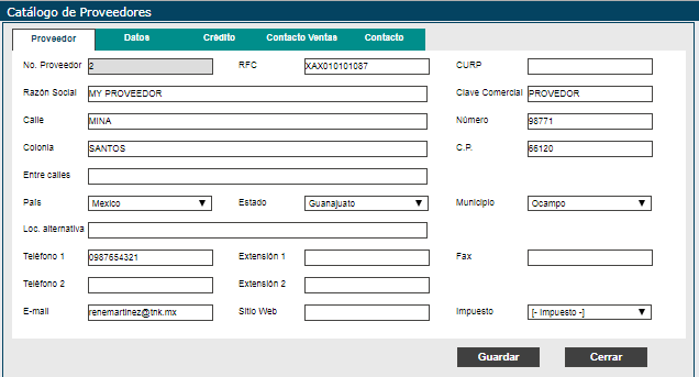 Ingrese la Razón Social en este caso el nombre del proveedor.