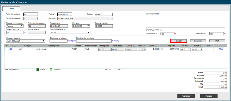 Deberá Cerrar La Factura De Compra Para Generar La Cuenta Por Pagar (Facturas De Proveedores) en: