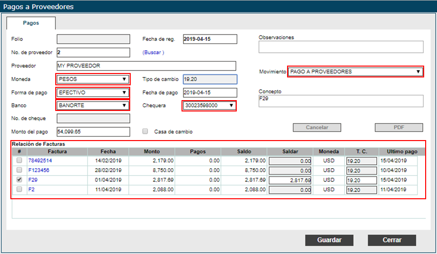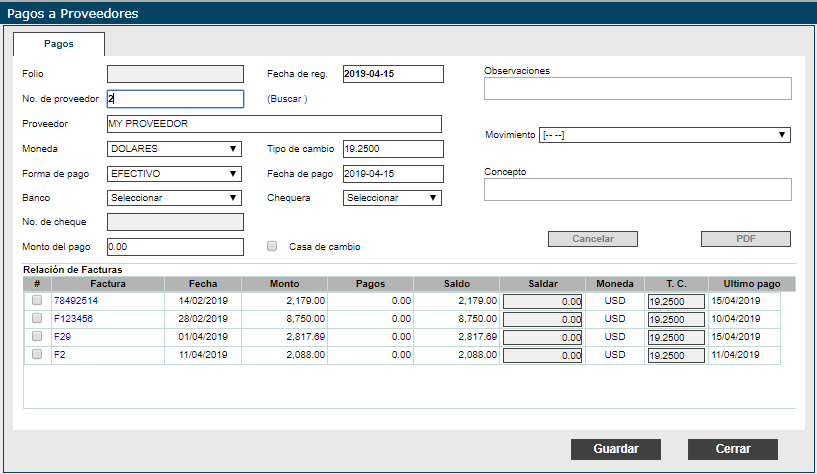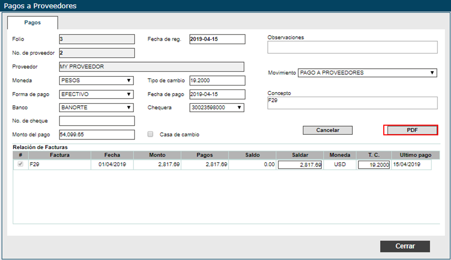 Entre al folio del pago del proveedor para poder generar el PDF del pago del proveedor.