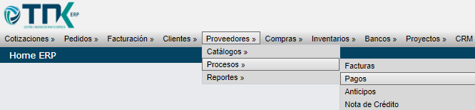 Ingrese a Pagos de proveedor en Proveedores > Procesos > Pagos
