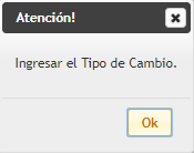 Ingrese el Tipo de cambio de la moneda acuerdo a su valor actual.