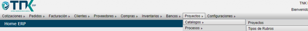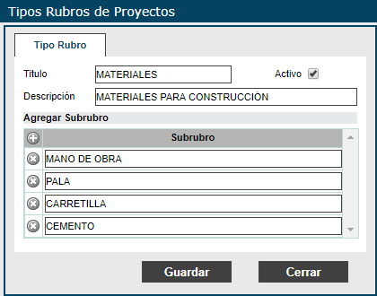Proyectos > Catálogos > Tipo de rubro
